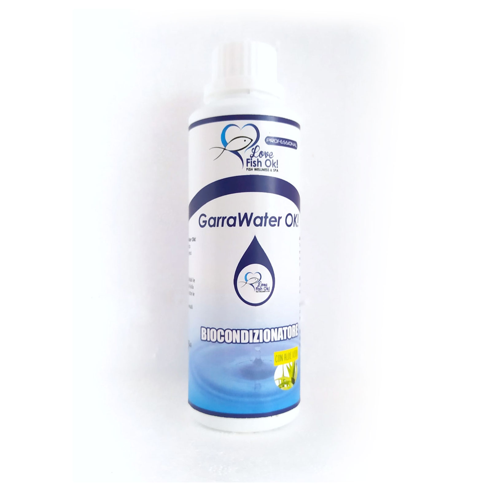 Il biocondizionatore GarraWater Ok!, trasforma l’acqua del rubinetto in acqua adatta alla vita dei pesci Garra Rufa, agendo immediatamente